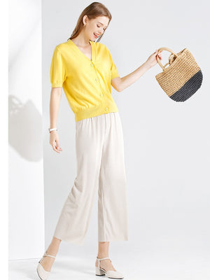 Calça Feminina de Pernas Largas Até o Tornozelo