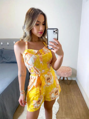 Com estampas exclusivas e alegres, o vestido macacão é confeccionado em tecido leve, que proporciona frescor e caimento suave no corpo. A modelagem valoriza a silhueta de forma confortável, garantindo liberdade de movimento sem perder a elegância.